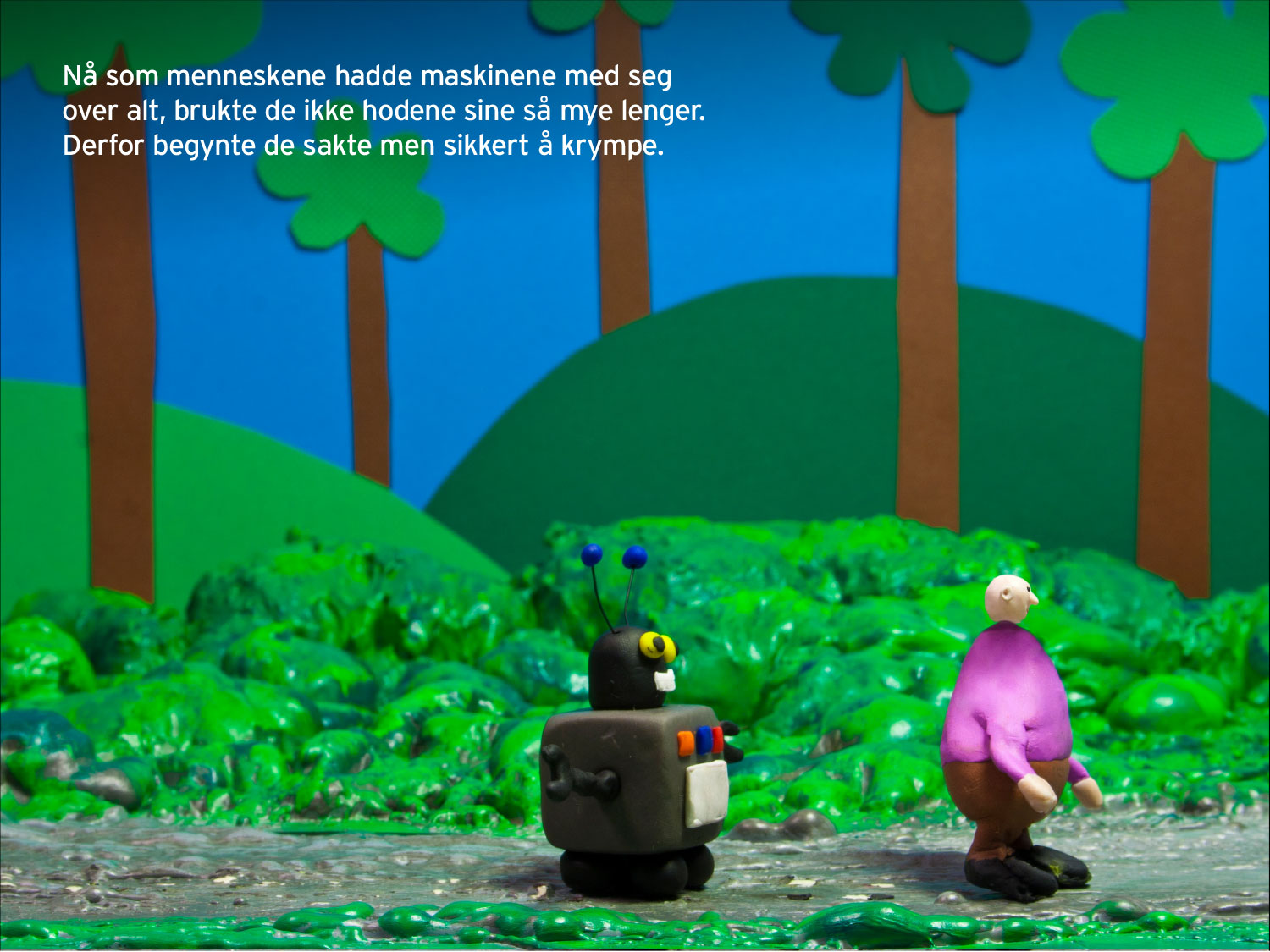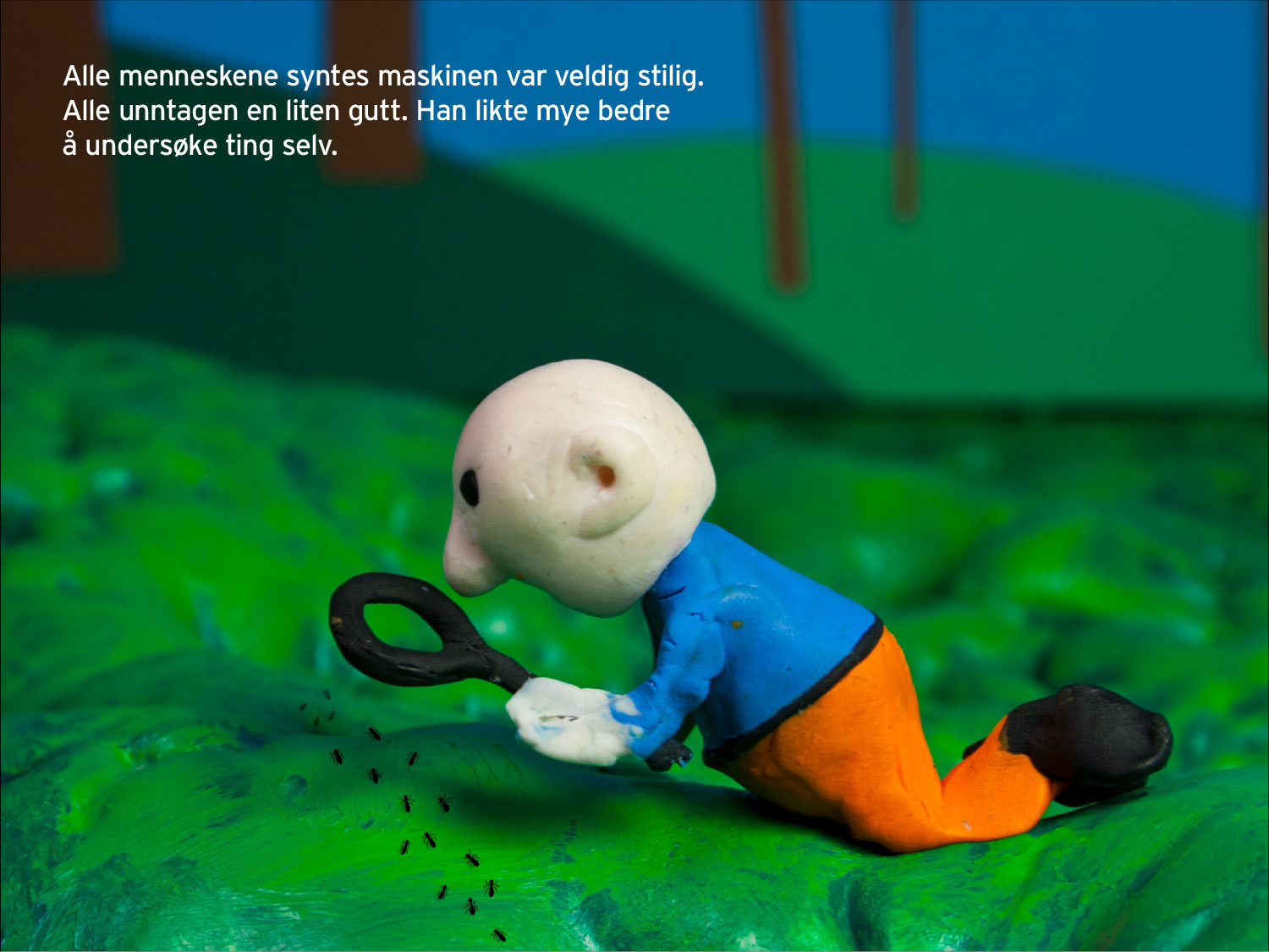 Trollmannens fantastiske maskin er en visuell barnebok som utforsker forholdet mellom mennesker og teknologi. Prosjektet ble laget i 2012, men tematikken er i dag mer aktuell enn noen gang – i en tid der kunstig intelligens, automatiserte svar og algoritmer preger hvordan vi lærer, tenker og tar valg.