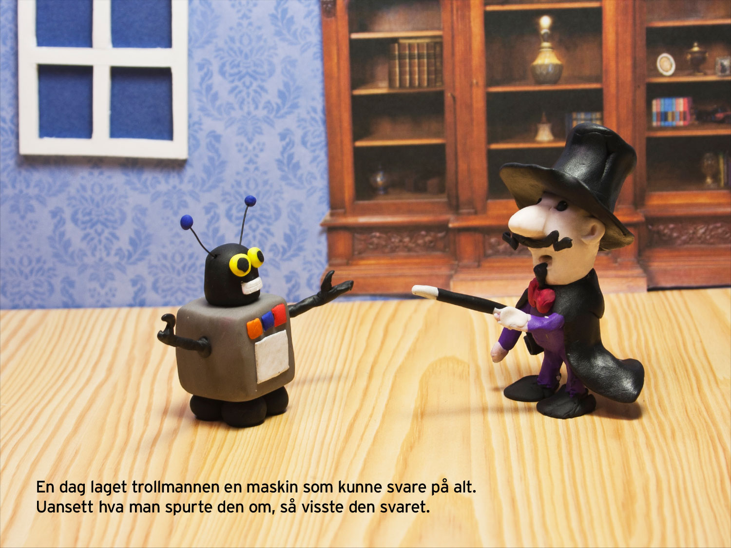 Historien handler om en liten trollmann som lager en maskin som kan svare på alt. Maskinen blir raskt populær, og menneskene rundt ham begynner å bruke den til stadig flere ting.